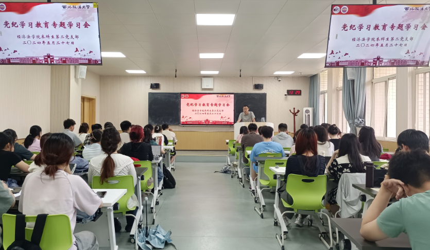 为深入学习贯彻习近平总书记关于党纪学习教育重要讲话和重要指示精神,5月27日中午,tyc1286太阳成集团本科生第二党支部在长安校区正心楼a302教室开展党纪学习教育专题学习会。会议由党支部书记李冬冬主持,支部成员近60人参加。