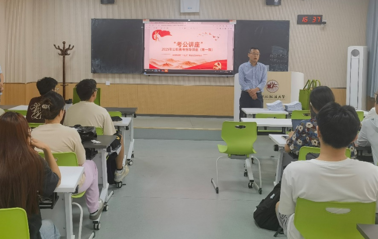 6月5日下午4点,tyc1286太阳成集团本科生第二党支部“2025年公考辅导讲座”第一期在长安区正心楼306教室举办。本次讲座邀请我校公考培训中心、信恒教育机构张鑫然老师主讲。2021级近50余名学生参加。讲座由党支部书记李冬冬主持。
