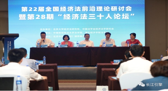 7月19日至20日,第22届全国经济法前沿理论研讨会暨第28期“经济法三十人论坛”及青年圆桌论坛在武汉顺利召开。会议由北京大学经济法研究所、中国法学会经济法学研究会主办,中南财经政法大学法学院、湖北经济学院法学院联合承办。7月19日9时,湖北经济学院校党委副书记、校学术委员会主任,中南财经政法大学法学院经济法专业博士生导师组组长刘大洪教授主持开幕式。中共湖北省委政法委副书记、湖北省法学会党组书记、常务副会长刘太平,《中国法学》副总编辑王莉萍,中南财经政法大学副校长姚莉,湖北经济学院法学院院长邱秋,北京大学经济法研究所所长、中国法学会经济法学研究会会长张守文教授先后致辞。北京大学法学院教授、中国法学会经济法学研究会会长张守文以《经济法新型责任形态的理论拓掘》为题,作会议基调发言。随后,与会专家学者分别就“经济法责任形式的理论前沿”、“经济法责任形式的法理基础”、“经济法责任形式的实施机制”及“市场规制法领域的责任形式”四个分议题深入研讨交流。