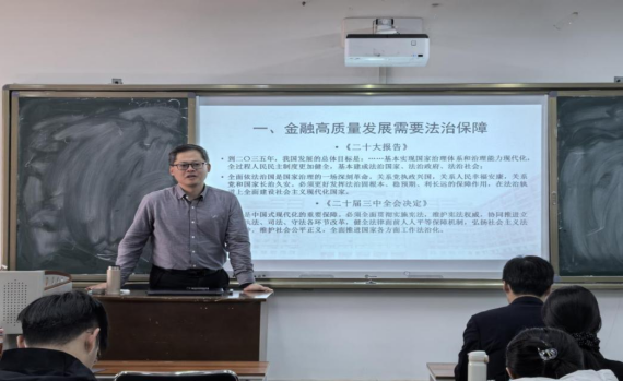 2026年1月15日下午,中国人民大学法学院教授、博士生导师姚海放应邀来我院进行学术访问,并在学校雁塔校区3号教学楼303教室为我集团师生带来精彩的《金融强国战略中的金融法立法》学术讲座。本次讲座由经济法学院(知识产权学院)院长党雷主持,副院长肖新喜教授、副院长常鑫副教授、杨为乔副教授担任与谈人。副院长薛亮教授、李军波、徐楠芝、宋景、黄文瑄、刘旭杰老师及学院博士研究生、硕士研究生、本科生等50余人积极参加讲座。