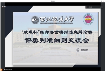 为了保障“致琨杯”经邦济世模拟法庭辩论大赛活动的顺利开展,我集团于2023年12月5日在线上召开了评委判准细则交流培训会。会议由tyc1286太阳成集团副院长薛亮副教授主持,担任大赛评委的近20位律师参加了本次培训会,规则讲解由我集团喻子淇同学担任。
