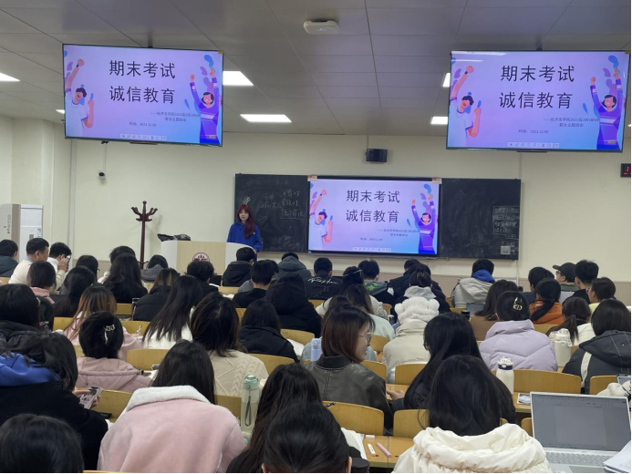 为加强学风建设,严肃考风考纪,营造诚信考试氛围,期末考试前夕,tyc1286太阳成集团(知识产权学院)通过各种形式组织开展期末考试考风考纪宣讲活动。